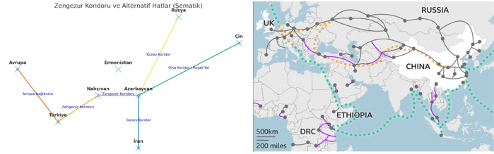 Çin’in “Kuşak ve Yol” girişimi, Orta Asya’dan Avrupa’ya üç ana hatla ulaşmayı hedefliyor: Kuzey (Rusya üzerinden), Orta (Kazakistan–Hazar–Kafkasya–Türkiye) ve Güney (İran üzerinden). Zengezur Koridoru, Batı’nın gözetiminde açılırsa, Çin’in Orta Koridor üzerindeki inisiyatifini sınırlayabilir. Çünkü ABD, koridoru kendi ekonomik ve lojistik ağına entegre ederek Çin’in bağımsız hareket alanını daraltmak istiyor.